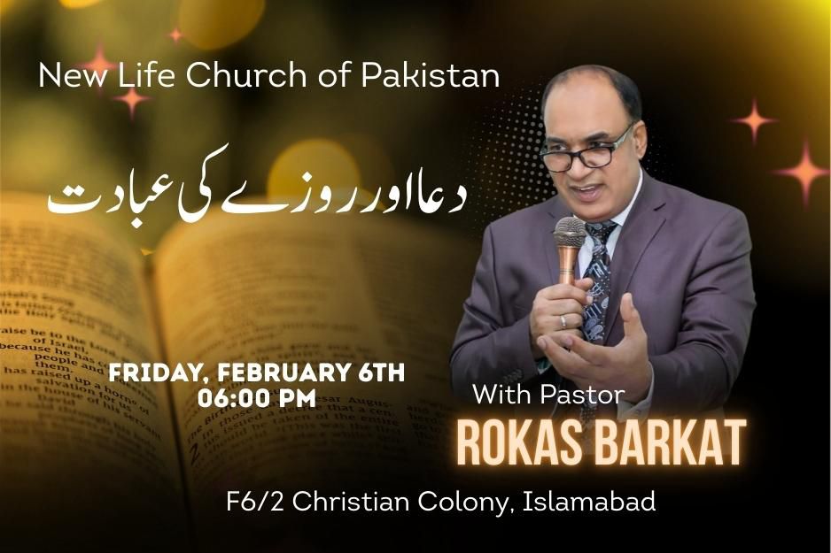 You are warmly invited to join us for our Prayer and Fasting meeting at New Life Church of Pakistan, F-6/2, Christian Colony, Islamabad, with Pastor Rokas Barkat.